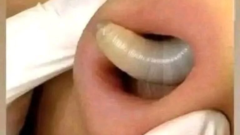 Larva found in the anus of a young woman after examining.